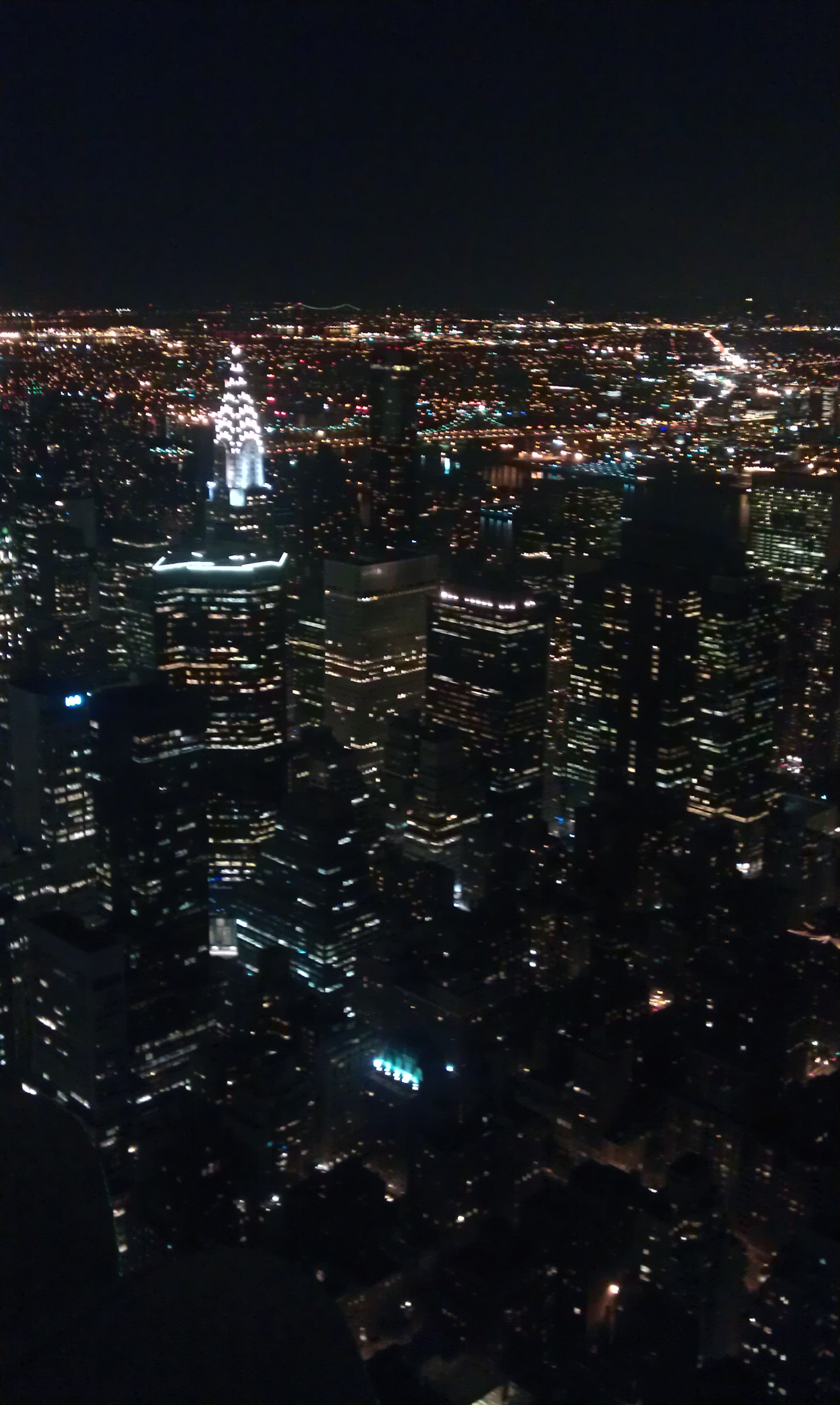 Right after our little visit to the park we went back to 34th street and had a quick meal outside. We then went up the building. And up we went. Through the airport style security where we had to put our stuff through the scanner and take our belts off again. Up to the 88th story and the observation platform.