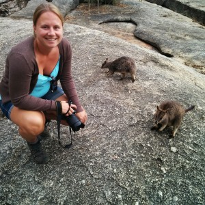 We consulted the lady at our B&B for more things to do in the neighbourhood, and she pointed us towards two things: Rock Wallabies and Platypus. Both in the wild! The Rock Wallabies live in the backyard of a campground, on a rocky part of the land. The campground even provides a map and some walking (bouldering!) tracks and charge an entry fee. Even though, it is great to see these animals in the wild! They are tiny! After sitting around them, we checked the clock and saw it was nearing dusk. And dusk is the best time to see wildlife of any kind, so we went to a location given to us by the lady from the B&B in Youngabarra where the Platypus were to be found. And we were in luck: they were there! In reality, they are much smaller than I had anticipated, but they must be the strangest animals we have even seen. Imagine this: egg laying mammal, with a giant beak of a duck at the front and a tail of a beaver at the back. Throw in some webbed feet, and you have a Platypus. What a great find!